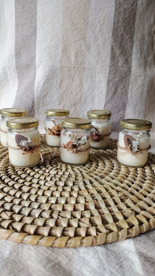 Velas aromáticas de cera de soja, amigables con el medio ambiente y un aroma que persiste en tus espacios. Recibimos todos los medios de pagos. Stock permanente. Souvenir personalizados a pedido